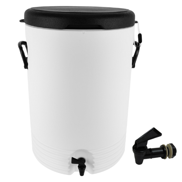 Diseñada para uso rudo, esta hielera de 10 galones es perfecta para eventos al aire libre, construcciones, catering o zonas de trabajo. Su diseño cilíndrico incluye un grifo dispensador de alta resistencia y asas ergonómicas para un transporte seguro.